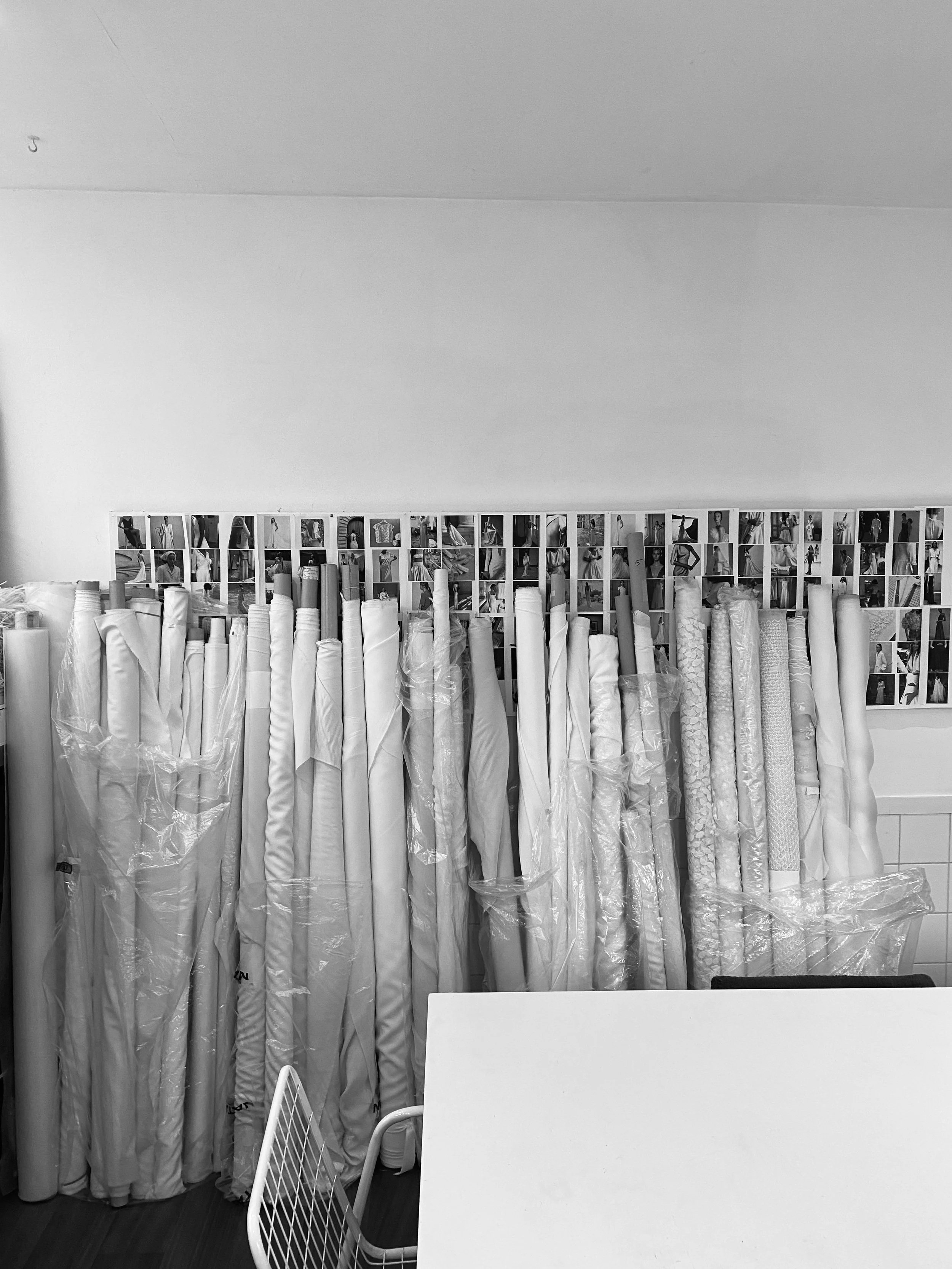 L'atelier propose plus d'une centaine d'échantillons, offrant ainsi un choix parfaitement adapté à chaque création. Nos matières, sont essentiellement sourcées en Europe, dans un souci de respect de l'environnement et de durabilité.